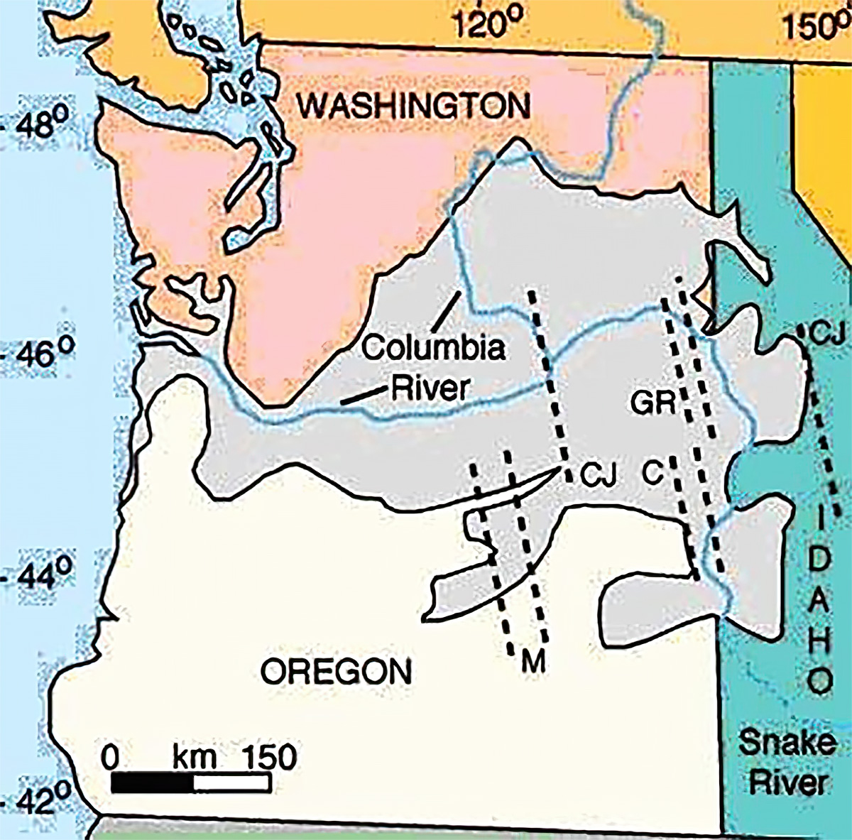 Fifteen million years ago the Oregon Coast looked noticeably different from what it does today.  At that time, the coastline was just forming as soft ocean sediments were being uplifted. The Columbia River flowed across western Oregon and emptied into the ocean near present day Newport. Geologists believe that the flows filled the Columbia River valley a number of times, each time pushing the river northward. This incredible outpouring of basalt is referred to as the Columbia River Basalt Flows.  Many different flows occurred over a period of about 11 million years, the largest being the Grande Ronde Formation.  It is mind boggling to think that the rock that makes up our ocean headlands originated over 400 miles away.  It likely flowed down low-lying valleys, through lava tubes that insulated the hot lava and kept it moving.