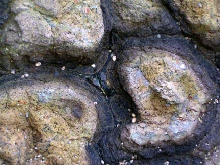 As the red-hot molten rock met the ocean it began to cool and harden. Geologists call basalt rock cooled in water, pillow basalts. They are different from other basalt rocks and can be recognized by their pillow like shapes with glassy surfaces.  They tend to fracture easily when exposed to the elements of nature and have rounded or radial fracture lines.  Look for them the next time you are walking the beach, especially at Maxwell Point.  They contrast sharply with the columnar basalt also found in the Grande Ronde Formation.